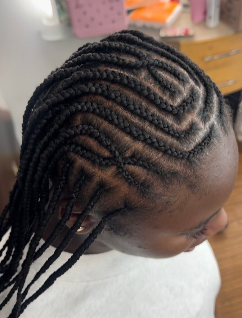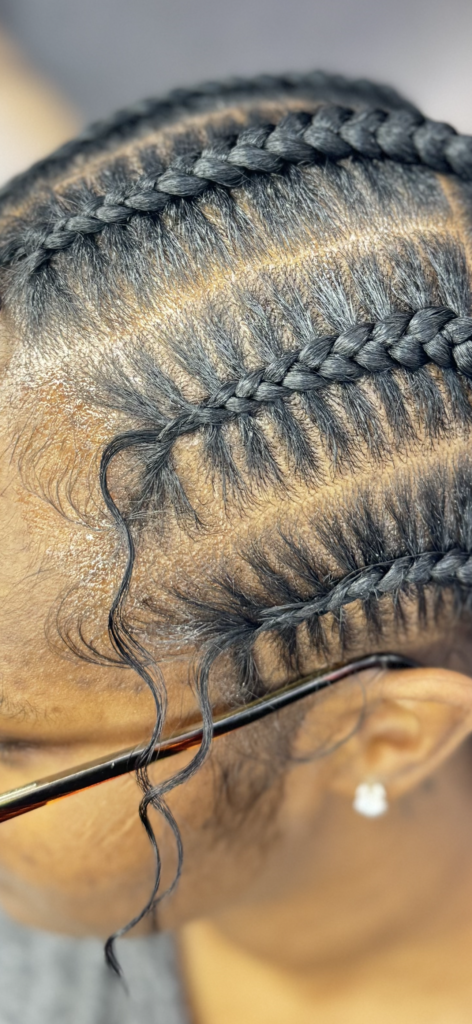 Neat, scalp braids that can be styled in straight backs, curves or creative designs.